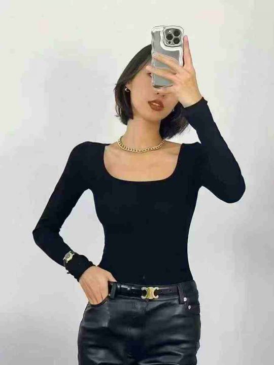 3800多件女款方领长袖高弹修身显瘦打底衫,尺码:XS~XL,面料柔软高弹力...