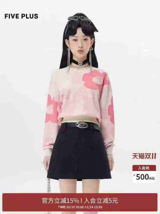 ① 针织衫女款浪漫花朵宽松落肩袖套头毛衣长袖!独立包装,均码可穿100-130...
