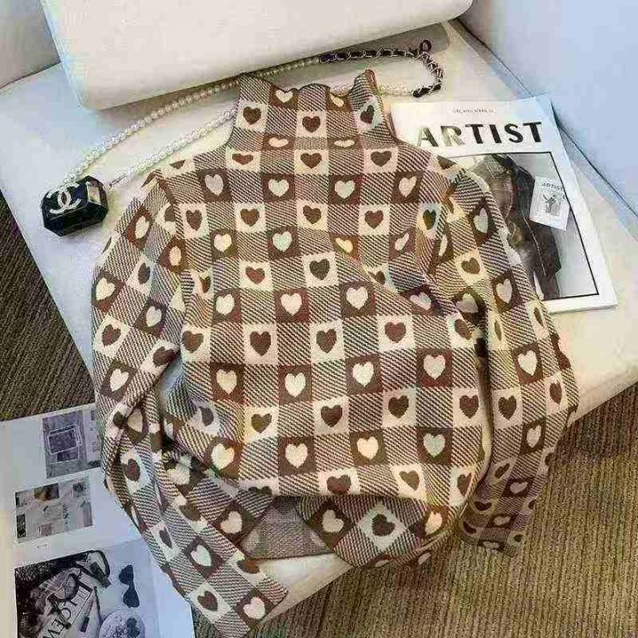 秋装新款韩版洋气设计感爱心高领打底包芯纱套头毛衣,独立包装,均码面料软...