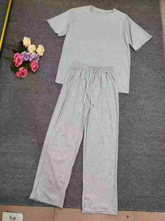 长裤薄款可外穿短袖睡衣夏季简约家居服套,独立包装,数量500件,码数M-4XL...
