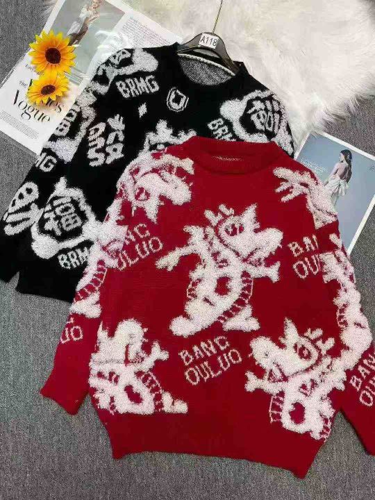 秋冬新款宽松慵懒风植绒提花工艺北极绒圆领套头毛衣,独立包装,均码宽松款...
