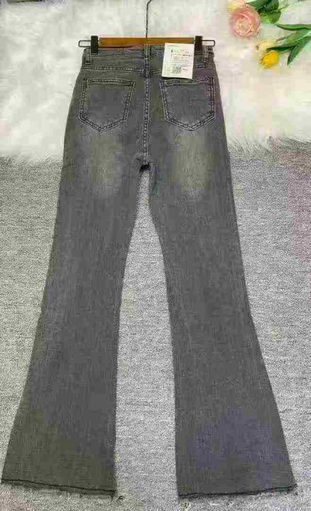烟灰色高腰微喇叭牛仔裤女2025年夏季新款毛边马蹄喇叭显瘦长裤子110件,独...