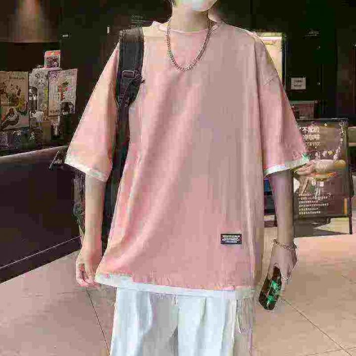 假两件宽松纯棉T恤,男港风潮流百搭痞帅落肩大板T,438件,M-5XL,黄色为主...