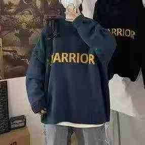 秋冬新款男女同款字母提花大版宽松慵懒风高领北极绒套头毛衣,独立拉链包装...