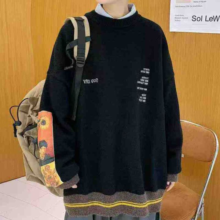 秋冬季新款宽松慵懒风港风字母提花圆领加厚北极绒套头毛衣,独立包装带吊牌...