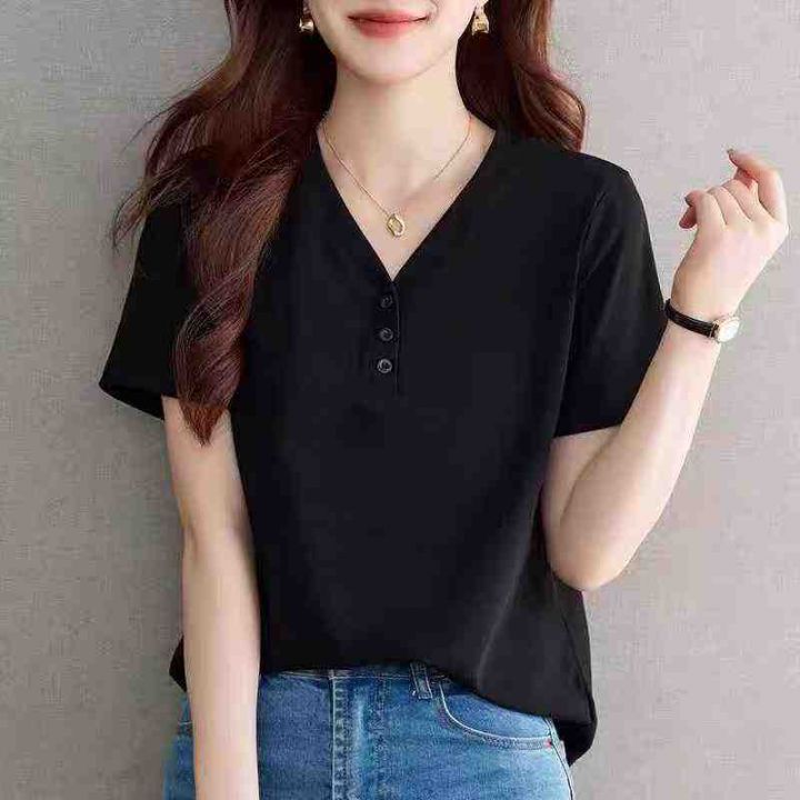 [月亮]:5.8清1500件[月亮]:夏季新款纽扣V领休闲短袖T恤[月亮]:M-XXXL 独...