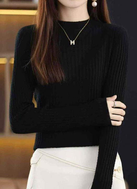 秋冬新款半高领薄款华夫格精纺设计感内搭打底针织衫,独立包装,均码面料柔...