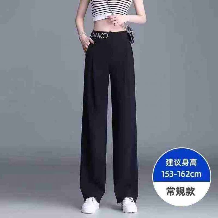 190条冰丝阔腿裤子女夏季薄款垂感梨形身材显瘦春秋直筒裤休闲西装裤,尺码M...