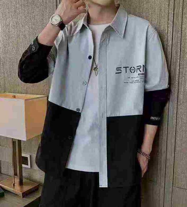 韩版休闲衬衣322件7.8,撞色拼接,字母印花,码数XL-3XL,独立包装带吊牌...
