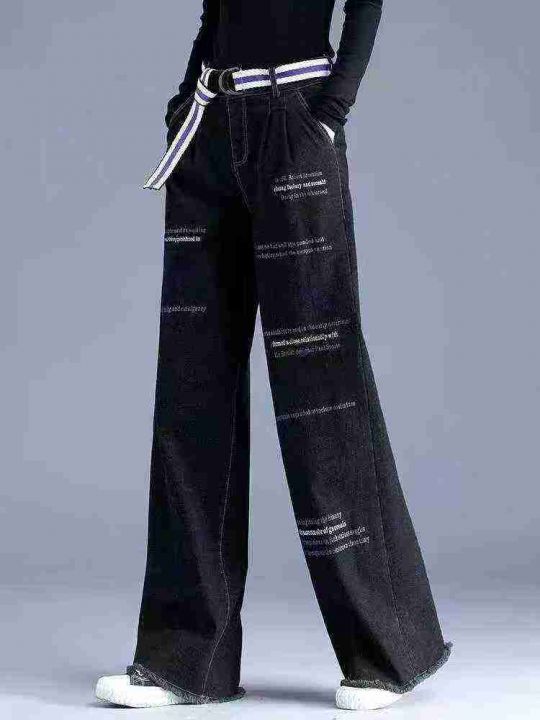 ☕️两色阔腿牛仔裤女直筒宽松裤子高腰甩裤新款大码大裤脚拖地裤 182条全清...