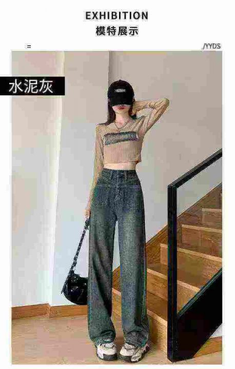 ☕️水泥灰阔腿牛仔裤女秋冬新款高腰显瘦宽松设计感直筒裤410条全清12.8元...