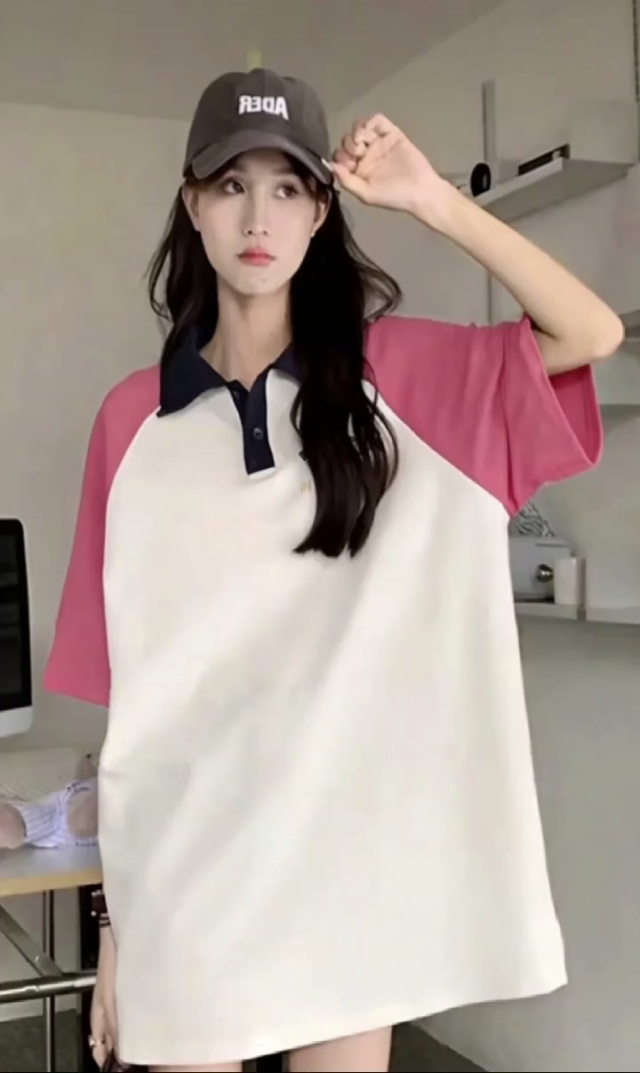 6.8清,282件拼接色翻领短袖女T恤夏季胖mm宽松设计感甜美POLO衫,小整杂款...