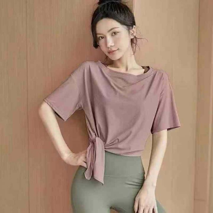 全清3.8元天猫在售款350件左右夏季薄款运动宽松下摆开叉不规则瑜伽服短袖T...