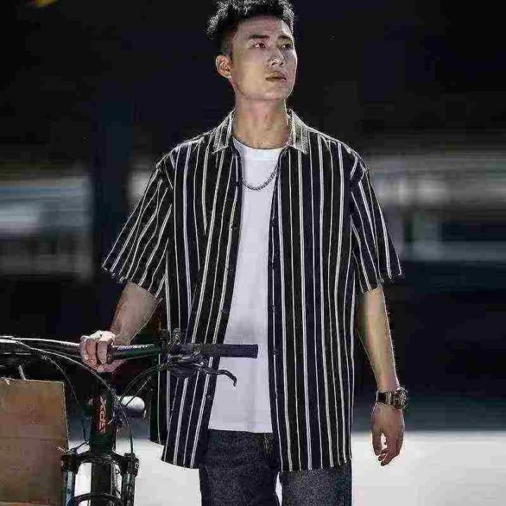 清货价8.8,数量274件左右,分货+1高级感条纹衬衫短袖男春夏季薄款复古港风...