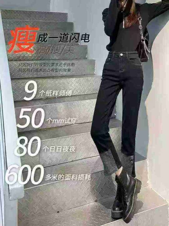 清9.8韩版直筒牛仔裤女黑色烟管裤春秋2025新款高腰显瘦九分裤,数量810件,...