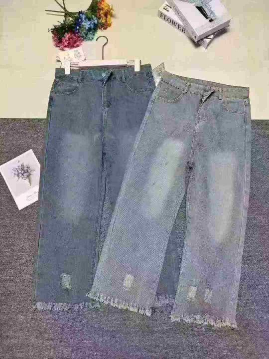 款号:K850#时尚洋气毛边破洞直筒牛仔裤550件,码数:XS-3XL,整款两色,品...