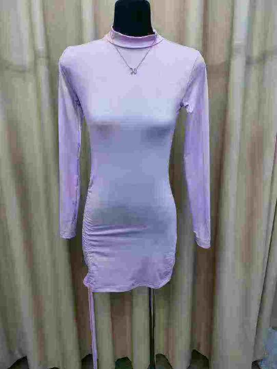 性感紫色长袖连衣裙女春季新款辣妹薄款包臀紧身显瘦圆领打底短裙,数量183...