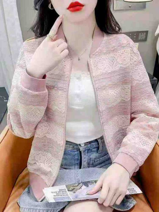 深圳南油高品质靓货,小众设计短款外套女春季时尚百搭蕾丝镂空棒球上衣,数...