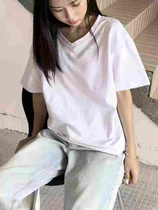 纯棉短袖t恤女V领2025年春夏新款宽松打底衫,V领为主,少量圆领码数:S-2X...
