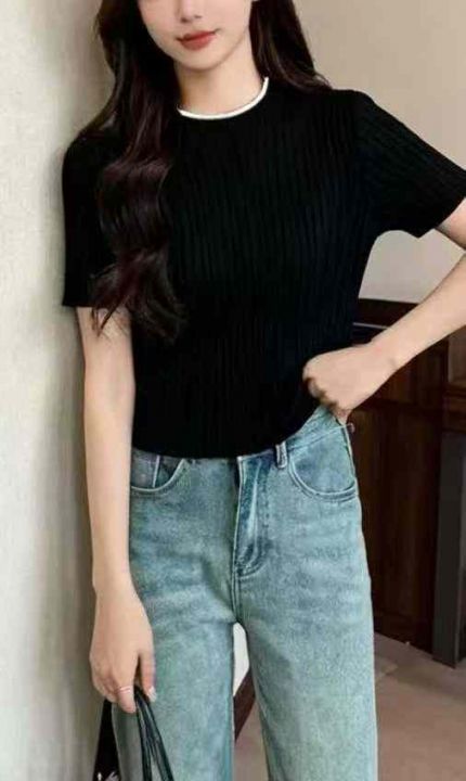 夏季新款法式复古绝美坑条针织短袖T桖,独立包装,均码面料软糯舒适弹力大...