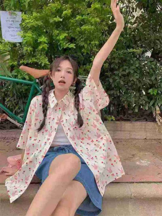 [月亮]:8.5清189件(不分货)[月亮]:港味甜美兔子满印宽松短袖衬衫[月亮]...