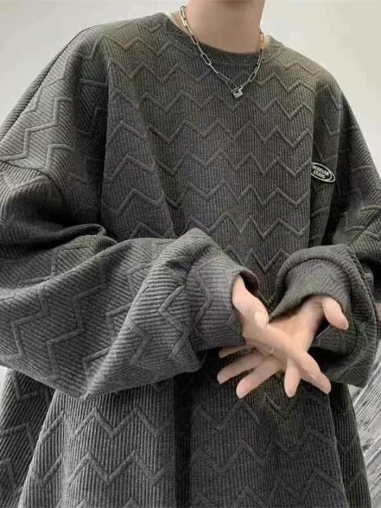 全清11.9,圆领加绒卫衣男设计感小众潮ins立体纹理外套港风情侣无...