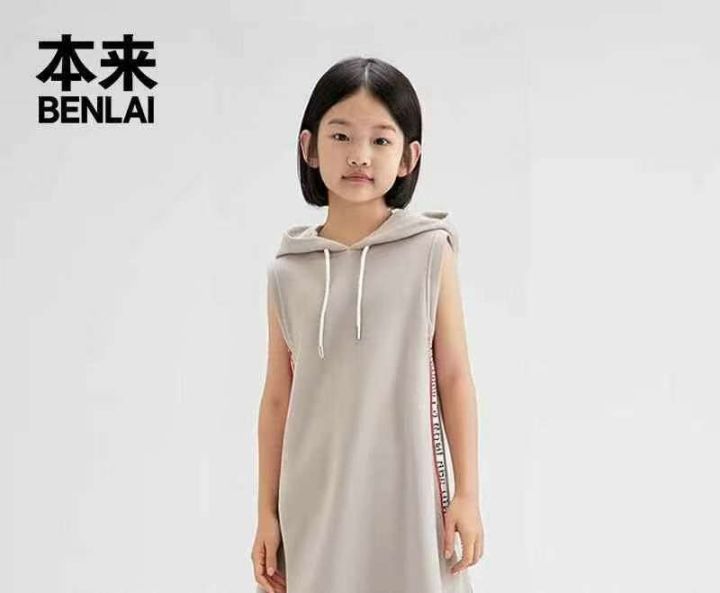 夏季女童无袖连帽裙(可以入实体店品质)简约时尚连衣裙纯棉有弹力、原拉链...