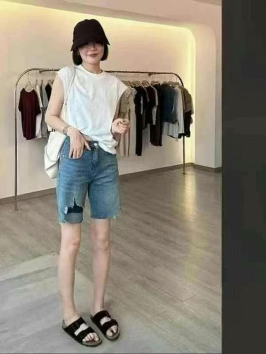 弹力牛仔五分裤☕️50条全清7.8元,码数S到XL,独立包装,夏季新款高腰破洞...