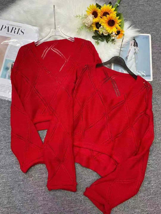 秋季新品宽松慵懒风大版镂空菱格V领计感小心机长袖针织衫,独立包装,均码...
