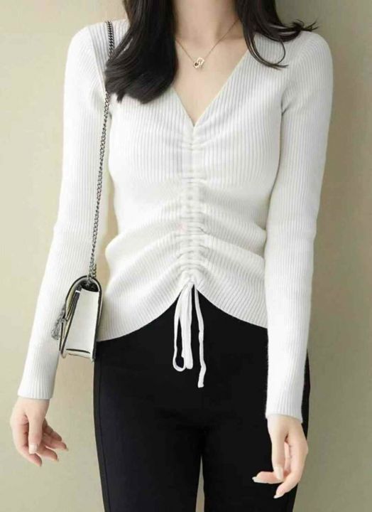 秋季新品韩版V领抽绳设计款包芯纱套头毛衣,独立包装,均码面料软糯舒适弹...