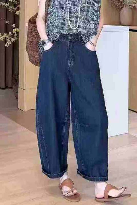 #牛仔裤批发复古水洗棉正腰 高腰弯刀牛仔阔腿宽松显瘦休闲牛仔裤潮流裤子,...