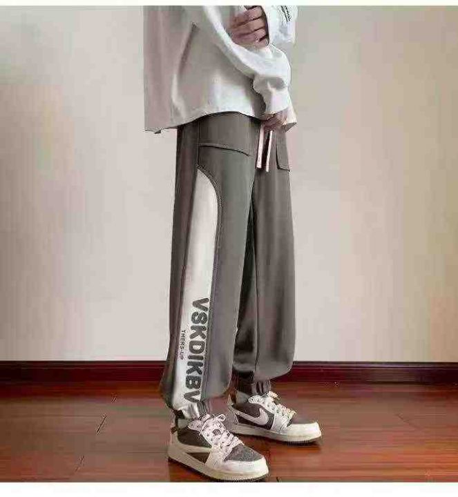 全清8.2分货+1男士秋季新款港风束脚卫裤潮牌拼色字母休闲长裤,独立包装,...