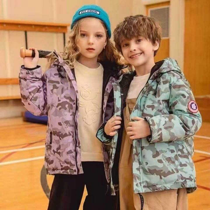 新款儿童羽绒服派克服迷彩中长款冬季加厚保暖男女童潮外套,独立包装,码数...