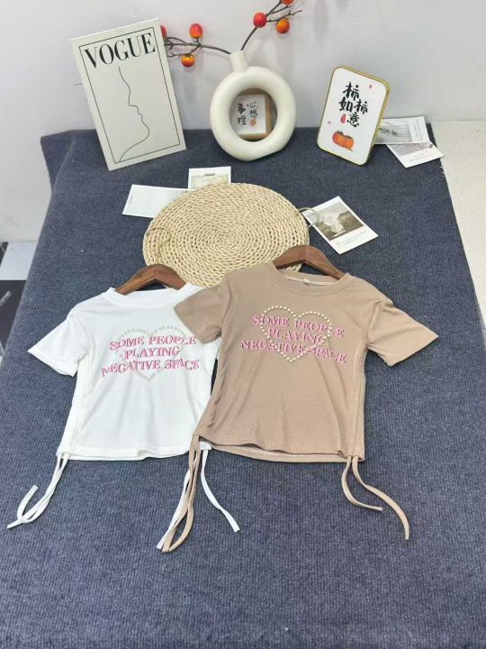 女童重工钉珠爱心短袖T恤夏装洋派7儿童设计感侧抽绳上衣,数量612件,码数9...