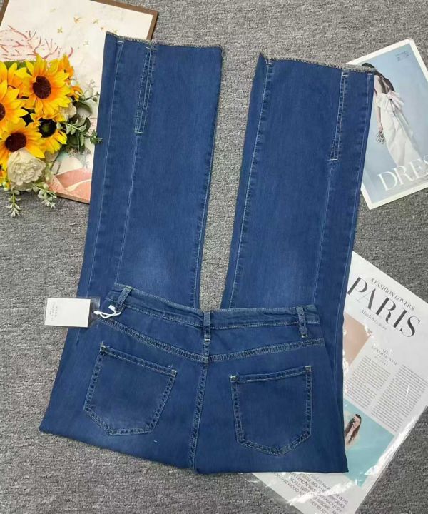 秋季新品宽松微胖Mm设计款开叉微喇叭阔腿牛仔长裤,独立包装带吊牌,码数M-...