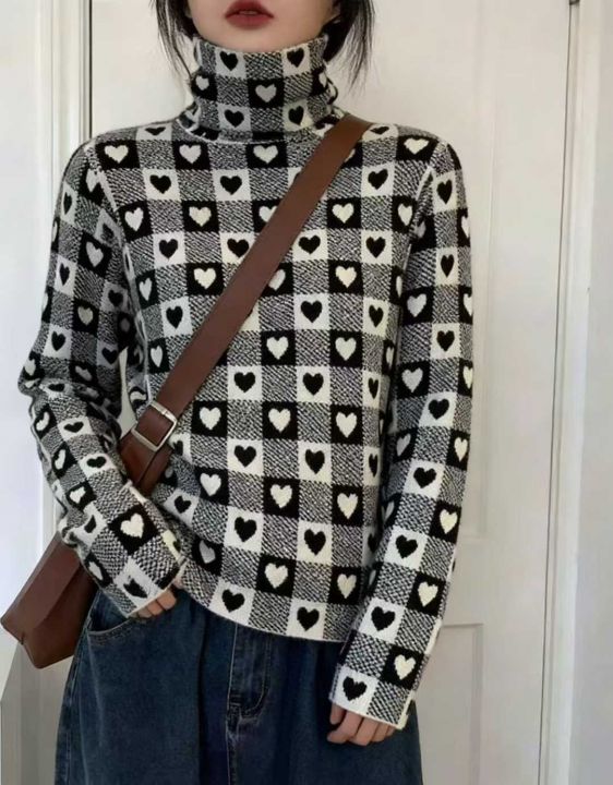 秋装新款韩版洋气设计感爱心高领打底包芯纱套头毛衣,独立包装,均码面料软...