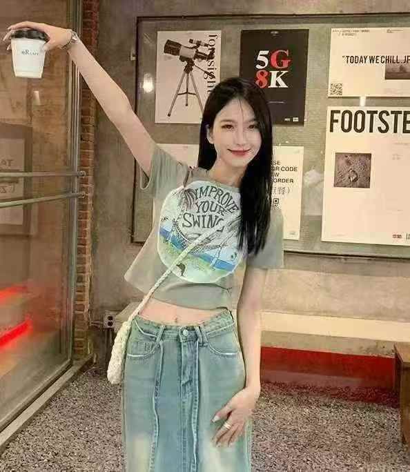 [福]辣妹纯棉短款印花T短袖500件左右,码数1-6码,整款四色,领口包边到肩...