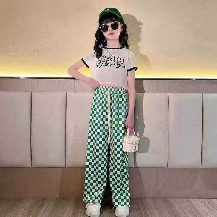 [福]530件左右童装冰丝格子直筒裤,整款两个色,码数:130一160,独立包装...