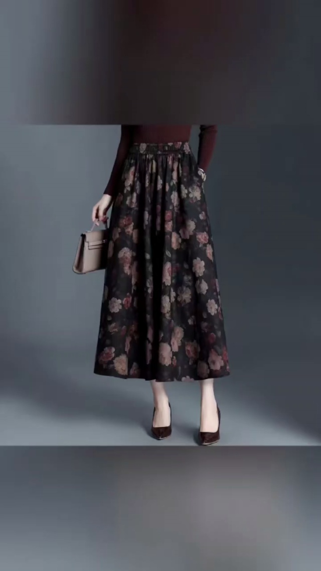 [福]松紧腰半身裙高腰伞裙半身裙女秋冬中长款a字大摆秋季长裙2200条左右,...