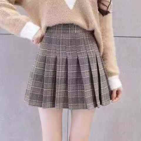 复古撞色设计感格纹毛呢百褶裙,数量79件,蓝格为主,码数2XL-4X...