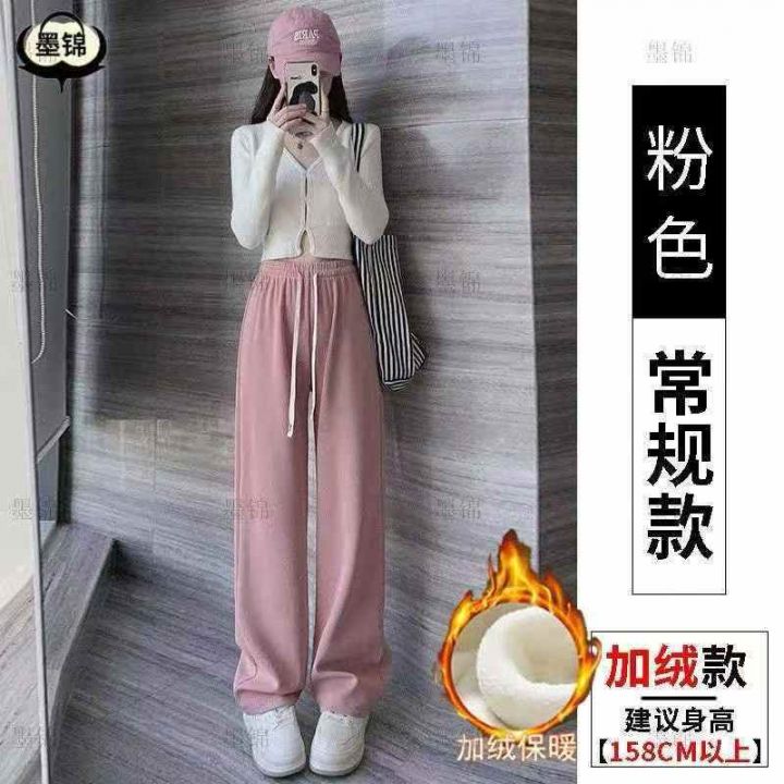 灯芯绒阔腿裤冬季加绒宽松垂感高腰显瘦休闲抽绳直筒女裤,整款三色,独立包...