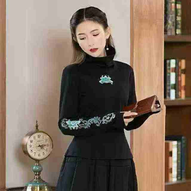 天猫下架,中国风秋装高领打底衫,刺绣工艺,两个颜色红色少,黑色有两种面...