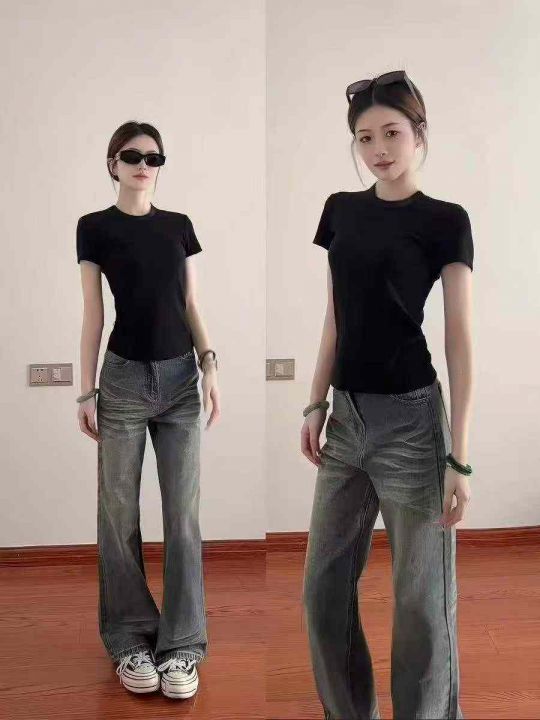3.8清电商仓回收1109件韩系街头风辣妹黑色纯棉圆领T恤,码数M-3XL。面料柔...