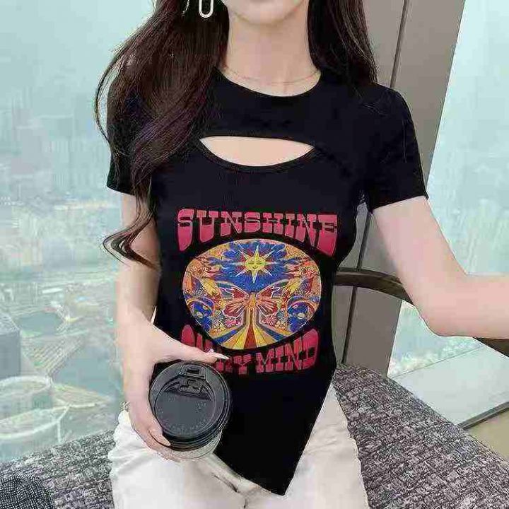 ☕️镂空上衣性感短袖t恤女显瘦修身洋气百搭辣妹T恤1000件全清6.8元 ,分货...