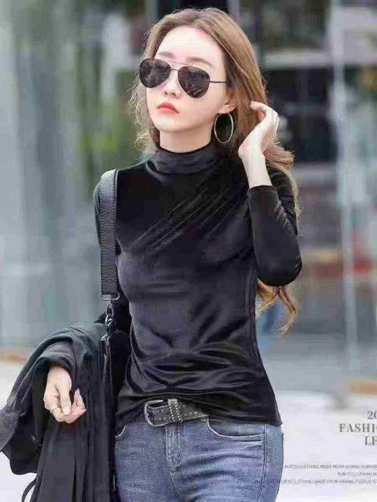 女装春款半高领显瘦洋气百搭丝绒打底衫,260件,1-5码,独立包装,全清4.8...