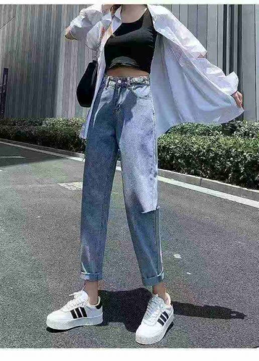全清12.8元天猫在售款332件左右高品质春秋款高腰显瘦小个子直筒破洞哈伦牛...