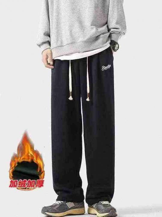刺绣直简裤男冬季加绒韩式潮款宽松百搭休闲运动长裤,前后设置有口袋,整款...