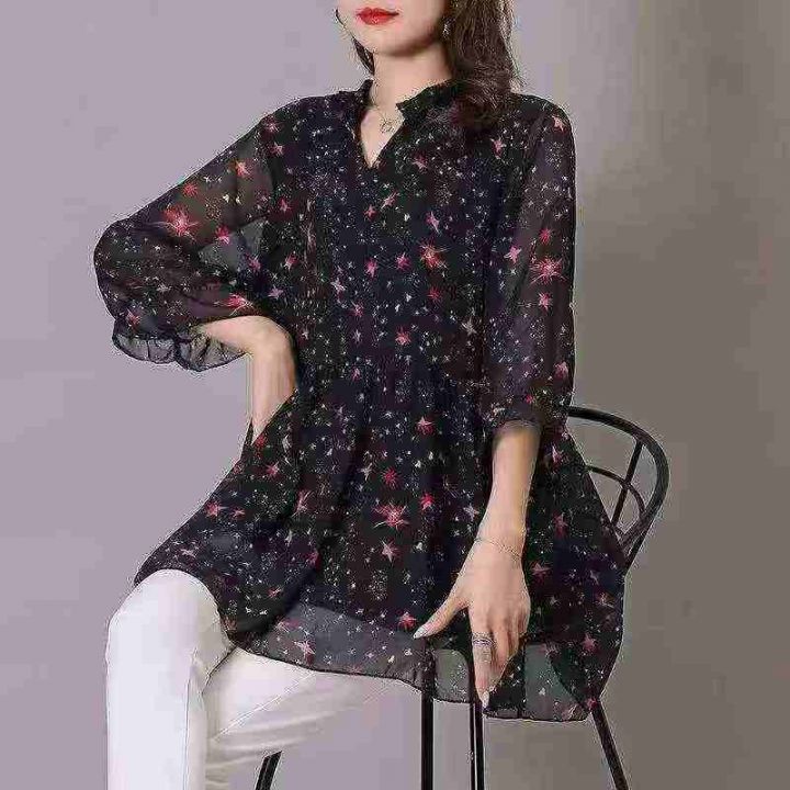 140件 大码女妈妈装夏季时尚洋气遮肚雪纺衫减龄上衣,整款两色 ,xL—4xL ...