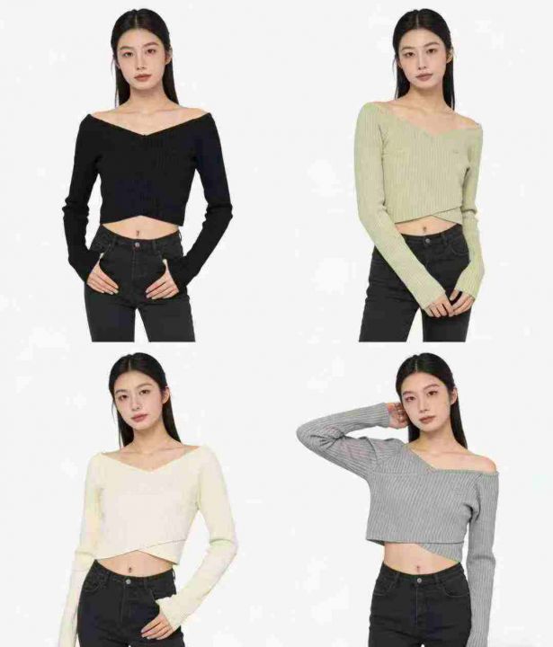 176件 靓妹交叉罗纹露肩短款针织衫上衣,整款四色,有独立包装 5.9 清...