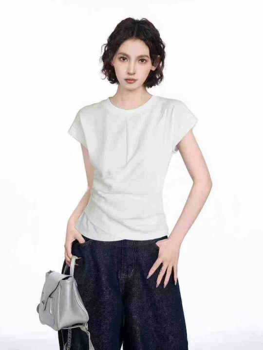 210件 白色圆领正肩短袖t恤女夏夏季设计感修身收腰显瘦靓妹上衣,单款,s—...